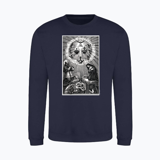 To nie tylko odzież, to manifestacja Twojej głębokiej wiary i duchowości. Każdy detal ryciny jest starannie oddany, co sprawia, że ta bluza jest prawdziwym dziełem sztuki.