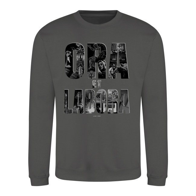 “Ora et labora” to łacińskie motto zakonu benedyktynów, oznaczające “Pracuj i módl się”. Stworzyliśmy tę katolicką bluzę, myśląc o potrzebie bardziej otwartego zapraszania Boga i modlenia się do Niego w naszym codziennym życiu, w tym w pracy. Jest to również demonstracja noszącego bluzę do gotowości do pracy na chwałę Pana.