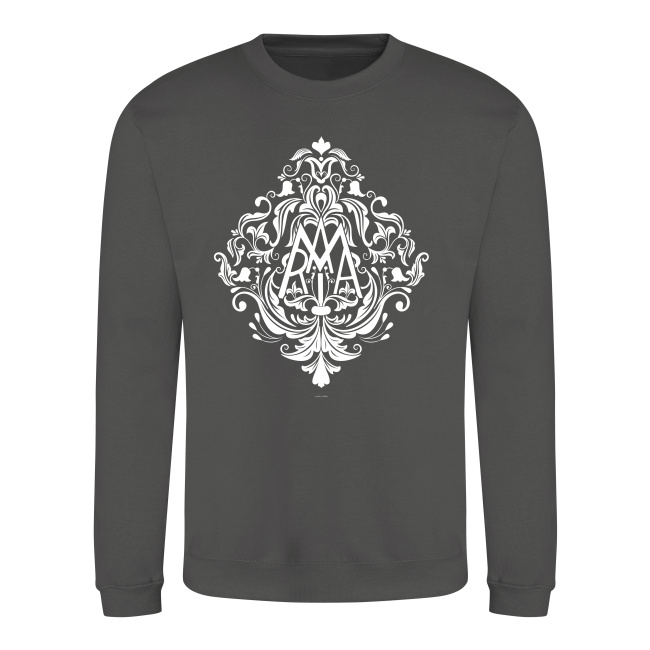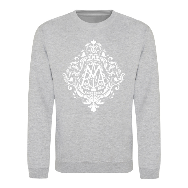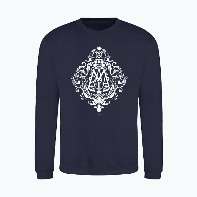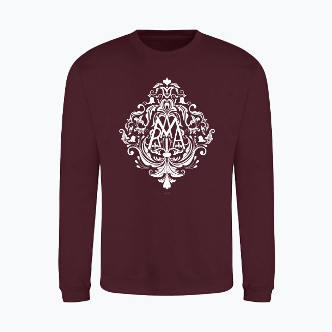 Nadruk prezentuje anagram maryjny – złożenie w jeden znak liter MARYIA – otoczony pięknym, tradycyjnym, barokowym ornamentem roślinnym. Zaprojektowany tak, aby dawał piękne i dyskretne świadectwo.