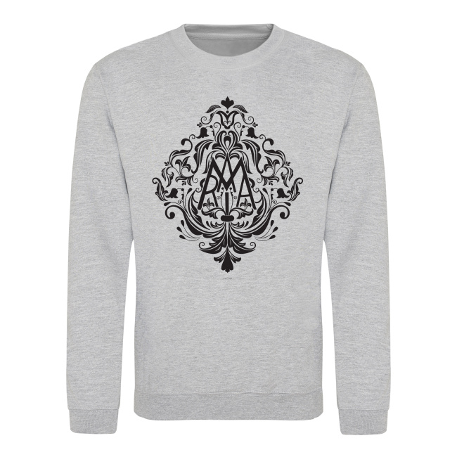 Nadruk prezentuje anagram maryjny – złożenie w jeden znak liter MARYIA – otoczony pięknym, tradycyjnym, barokowym ornamentem roślinnym. Zaprojektowany tak, aby dawał piękne i dyskretne świadectwo.