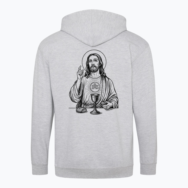 Projekt „Boże Ciało” powstał z pasji do głębokiej ikonografii eucharystycznej, nawiązując do liturgicznego misterium Ciała i Krwi Chrystusa. W centralnym punkcie grafiki – Jezus z promieniującym symbolem IHS, kielichem i chlebem – symbolizuje zatrzymanie najświętszej chwili Eucharystii, raz splot sacrum z codziennością. Ten wzór to subtelne, a zarazem wyraziste świadectwo wiary, które możesz nosić na ulicy, w kościele, czy podczas spotkania z przyjaciółmi.