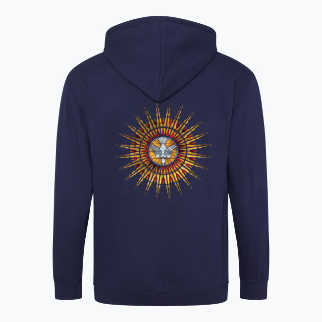 Nadruk stworzony na podstawie przepięknego witraża obrazuje gołębicę — symbol Ducha Świętego oraz jego moc i dary w postaci promieni, zstępujące na ziemię. Koszulka jest szczególnie dobrym prezentem na bierzmowanie 🙂