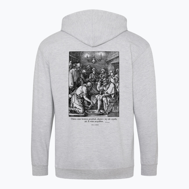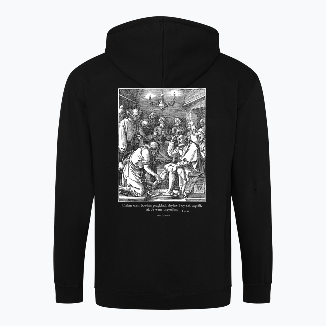 Na tym drzeworycie niemieckiego mistrza renesansu widzimy zszokowane miny uczniów, Jezusa z miską wody i ręcznikiem myjącego stopy Piotra. Projekt opatrzyliśmy cytatem z Ewangelii św. Jana.