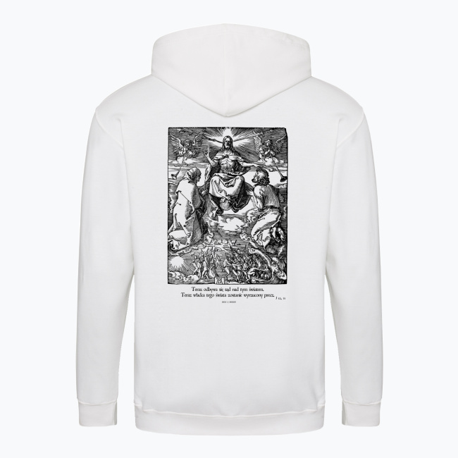 Wzór na tej bluzie jest autorstwa Albrechta Dürera, i pochodzi z okładki zbioru ilustracji “Mała pasja”, będącego zbiorem drzeworytów ilustrujących życie, mękę i zmartwychwstanie Chrystusa. W Deus Design Kochamy twórczość Albrechta Dürera za świetny graficzny styl, wyraziste przedstawienie emocji oraz głęboki symbolizm jego prac.