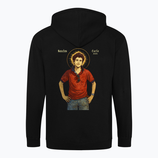 Święty Łukasz — autor Ewangelii i Dziejów Apostolskich, towarzysz św. Pawła Apostoła. Patron lekarzy, grafików, chirurgów, malarzy, introligatorów, rzeźbiarzy, historyków, notariuszy, złotników i Hiszpanii. Prezentowany tutaj projekt, ikona świętego Łukasza jest autorskim dziełem naszego grafika. Przedstawiony na tej koszulce z katolickim nadrukiem, z piórem w jednej oraz księgą w drugiej ręce. Na księdze znajduje się byk — symbol ewangelisty. Ma on na sobie ozdobną szatę, wzorowaną na późnoantycznych ubiorach, a zza jego głowy wyłania się promienista aureola. Ta koszulka męska ze świętym została zaprojektowana w stylu wzorowanym z jednej strony na komiksach takich jak Thorgal, z drugiej na impresjonistycznych malunkach kładących nacisk na “malowanie światłem”. Patrzymy na tę bluzę chrześcijańską jako na nowoczesną stylem ikonę świętego Łukasza ewangelisty.