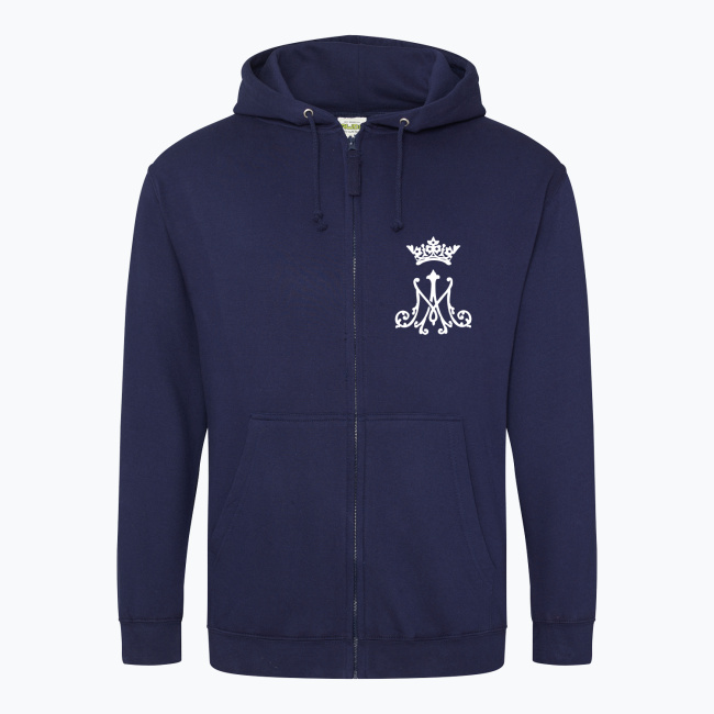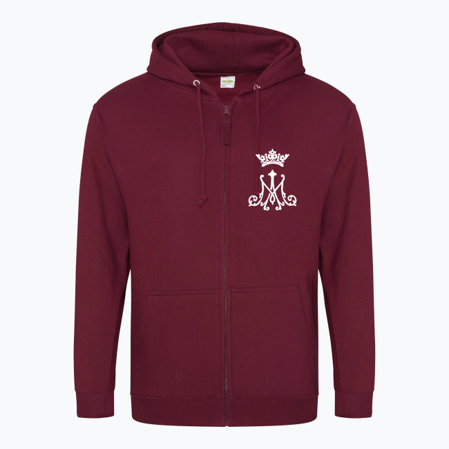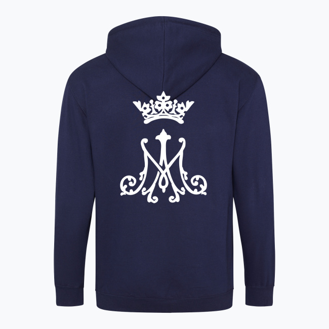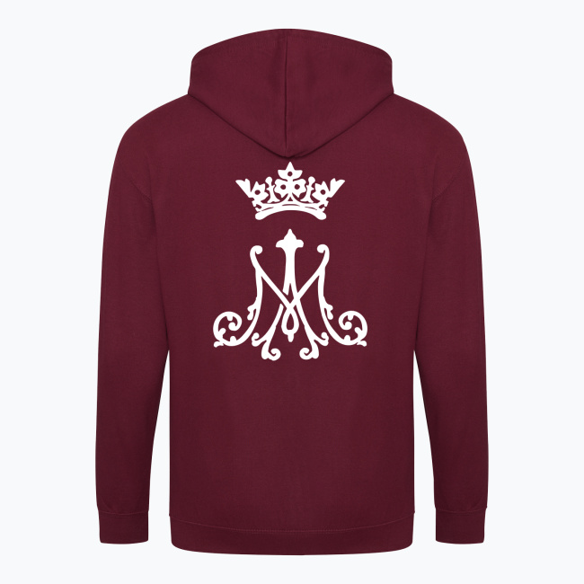 Symbol Maryjny inspirowany haftem artystycznym, którym sygnuje się np. ornaty lub bieliznę kielichową. Projekt przedstawia pierwszą i ostatnią literę Imienia Maryi w ozdobnym barokowym stylu, zwieńczone koroną Matki Chrystusa. Całość przedstawiona w katolickim minimalistycznym graficznym stylu. Idealna dla koneserów sztuki sakralnej spotykanej w detalu przestrzeni kościoła. Klasyka połączona z nowoczesnym designem podkreślająca szacunek i miłość chrześcijanina do Matki Bożej.