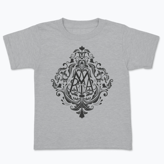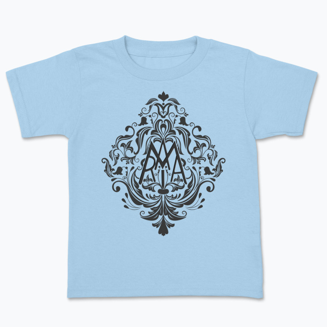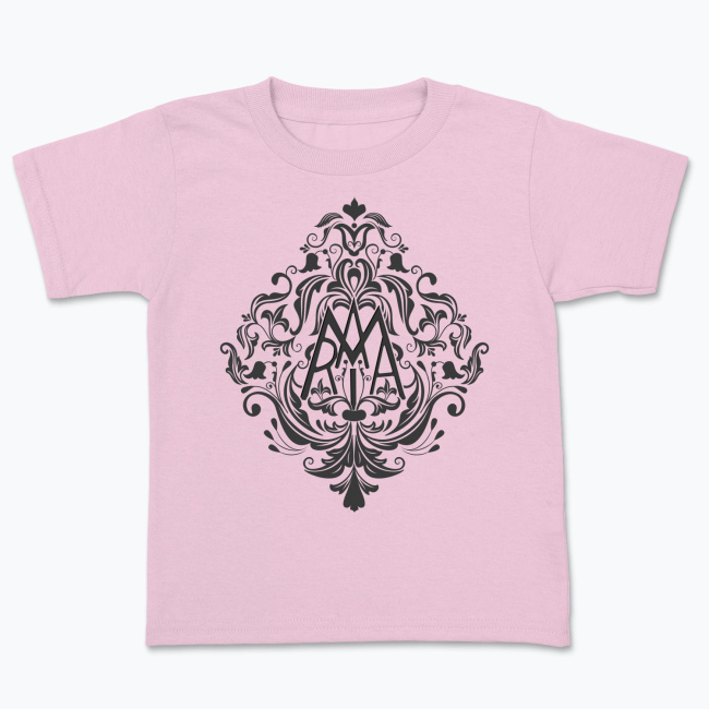 Nadruk prezentuje anagram maryjny – złożenie w jeden znak liter MARYIA – otoczony pięknym, tradycyjnym, barokowym ornamentem roślinnym. Zaprojektowany tak, aby dawał piękne i dyskretne świadectwo.