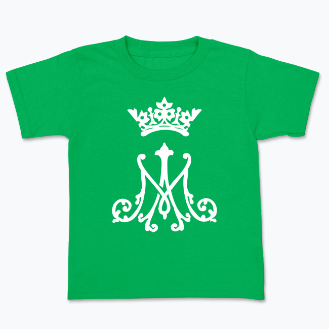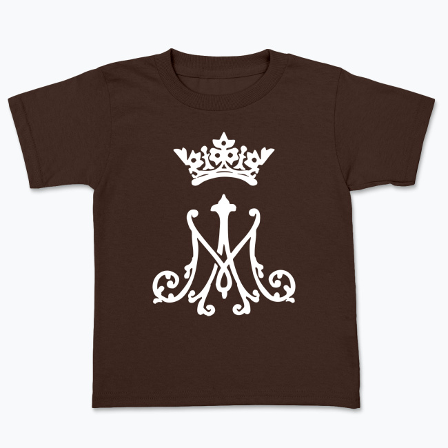 Symbol Maryjny inspirowany haftem artystycznym, którym sygnuje się np. ornaty lub bieliznę kielichową. Projekt przedstawia pierwszą i ostatnią literę Imienia Maryi w ozdobnym barokowym stylu, zwieńczone koroną Matki Chrystusa. Całość przedstawiona w katolickim minimalistycznym graficznym stylu. Idealna dla koneserów sztuki sakralnej spotykanej w detalu przestrzeni kościoła. Klasyka połączona z nowoczesnym designem podkreślająca szacunek i miłość chrześcijanina do Matki Bożej.