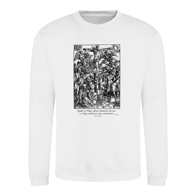 Męska koszulka katolicka wykonana ze 100% bawełny o gramaturze 180g. Prosty uniwersalny krój, bez szwów bocznych, z taśmą wzmacniającą na karku. Tkanina jest przyjemna w dotyku, nie uczula. Nadruk chrześcijański wykonany bardzo trwałą metodą.
