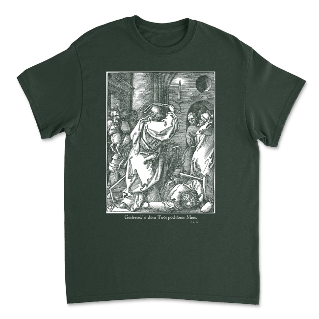 Dla nas, w Deus Design, jest to szczególnie ważna scena biblijna. Chrystus wypędzając przekupniów ze świątyni nie krytykuje zarabiania na dewocjonaliach czy innych rzeczach powiązanych z religijnością (jak co niektórzy superagresywni ateiści potrafią nam zarzucać). Krytykuje ich motyw oraz niewłaściwe miejsce. My zawsze staramy się pogodzić potrzebę zysku, z którego utrzymujemy swoją rodzinę, z celami o wiele większymi i wyższymi, jakimi jest nawracanie poprzez odzież. Moglibyśmy produkować koszulki z dowolnymi nadrukami. Produkujemy te, ponieważ to one, naszym zdaniem, mają nie tylko dawać nam pieniądze na utrzymanie, ale także przybliżać ludzi do Boga. Przekupnie w Świątyni Jerozolimskiej zaś wykonywali swoją pracę w miejscu niewłaściwym i wyłącznie dla zysku, który zaślepił im to, że swoją pracą mieli ułatwiać innym przybliżenie się do Boga, a nie agresywnie maksymalizować swój zysk.