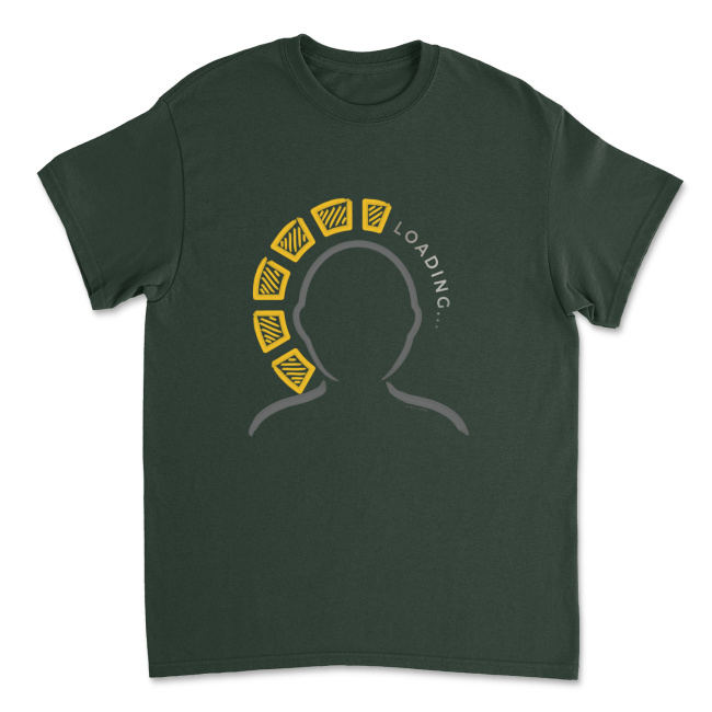 Koszulka z grafiką, która ma w żartobliwy sposób ukazywać to, że noszący ją katolik dąży do świętości, ale z drugiej strony wie, że świętym, póki co nie jest i ma dużo do wypracowania ze sobą i Chrystusem. Inspirowana oczywiście komputerowymi paskami i kółeczkami logowania oraz “fejsbukowym” domyślnym zdjęciem profilowym.