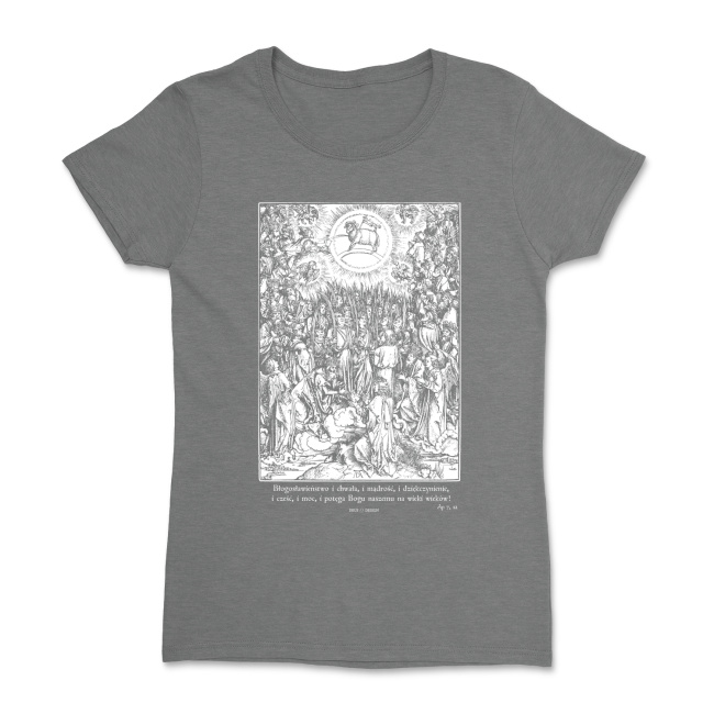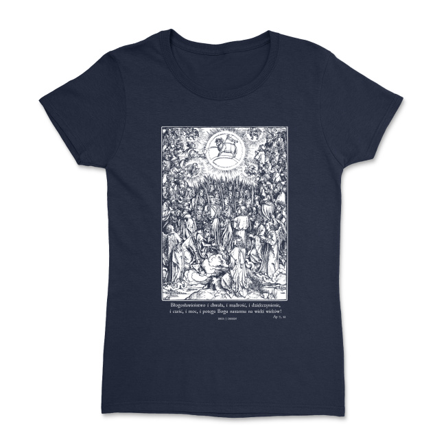 Napisz pierwszą opinię o „Adoracja Baranka – koszulka damska ciemna”