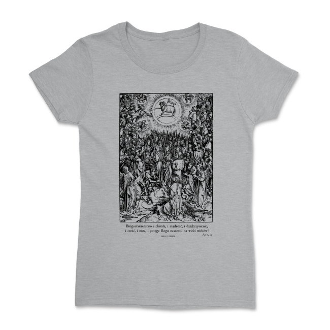 Napisz pierwszą opinię o „Adoracja Baranka – koszulka damska jasna”