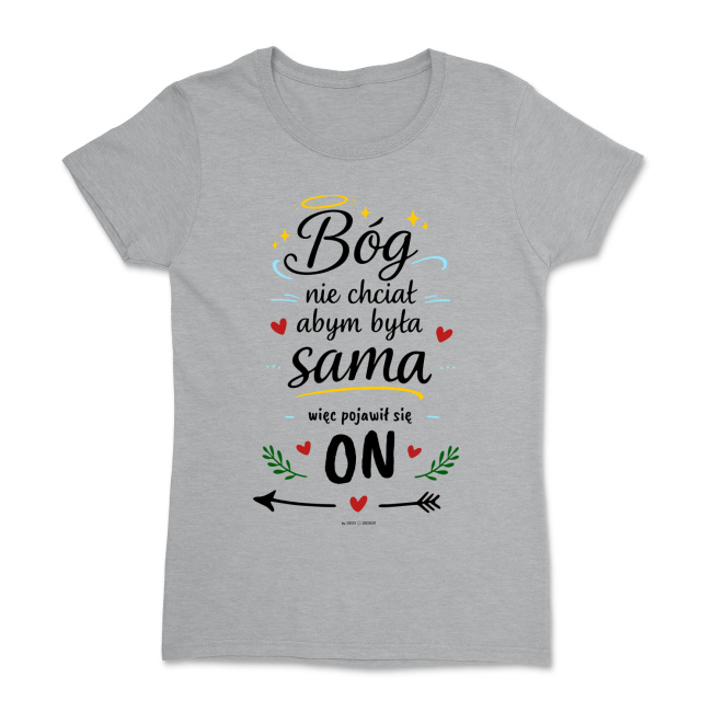 Bóg nie chciał, abym była sama, więc pojawił się ON. Nasz humorystyczny, walentynkowy projekt damskiej koszulki, stworzony z myślą o parach – męską wersję znajdziecie tutaj. Razem tworzą idealny prezent dla małżeństwa czy narzeczonych, którzy chcą w humorystyczny sposób obdarować się wzajemnie i pokazać światu, że są z nich dwa kochające się łosie. Także super przent dla wierzących nowożeńców 🙂 Koszulka powstała w stu procentach bezboleśnie, do jej wykonania nie użyto żadnych żeber 😉