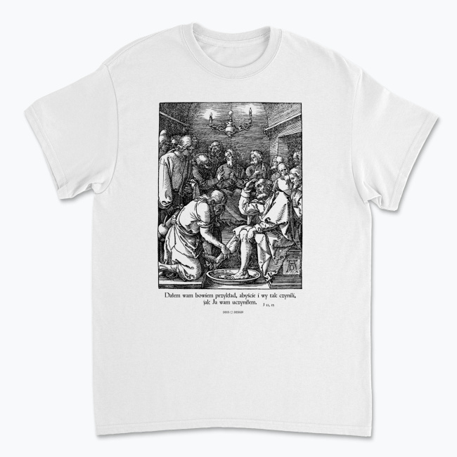Na tym drzeworycie niemieckiego mistrza renesansu widzimy zszokowane miny uczniów, Jezusa z miską wody i ręcznikiem myjącego stopy Piotra. Projekt opatrzyliśmy cytatem z Ewangelii św. Jana.
