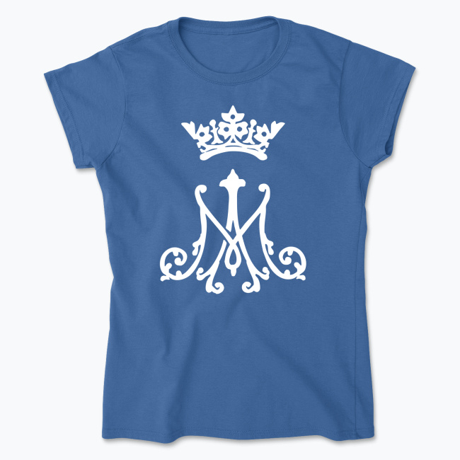 Symbol Maryjny inspirowany haftem artystycznym, którym sygnuje się np. ornaty lub bieliznę kielichową. Projekt przedstawia pierwszą i ostatnią literę Imienia Maryi w ozdobnym barokowym stylu, zwieńczone koroną Matki Chrystusa. Całość przedstawiona w katolickim minimalistycznym graficznym stylu. Idealna dla koneserów sztuki sakralnej spotykanej w detalu przestrzeni kościoła. Klasyka połączona z nowoczesnym designem podkreślająca szacunek i miłość chrześcijanina do Matki Bożej.